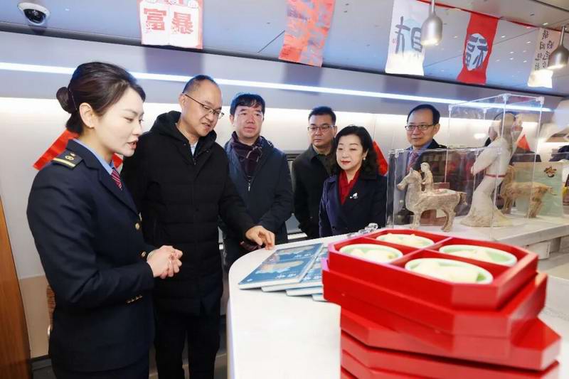 2026年2月11日,汉景帝阳陵博物院联合西安局集团公司西安客运段,在G916次跨境列车上举办“陕港高铁品汉韵 丙午瑞马迎新春”庆祝丙午瑞马小年主题文化宣传活动。陕西省文物局二级巡视员王金青、西安局集团公司党委宣传部(企业文化部)部长熊垚光、西安局集团公司西安客运段党委副书记梁波、陕西省文物局三级调研员易嵘和汉景帝阳陵博物院副院长何宏参加了本次活动。